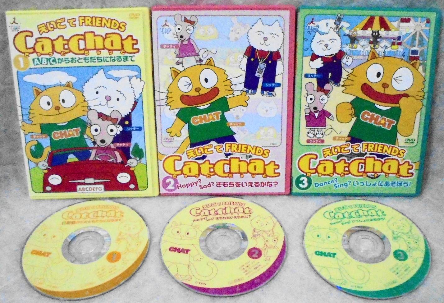 g5019(E2) CatChat (きゃっとちゃっと)えいごでFRIENDS 1~3巻 DVD3枚 英語教材