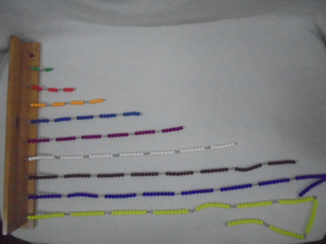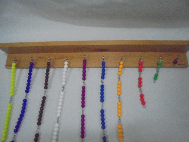 1から10までのビーズ・チェーンと壁に掛ける木製のフレームです。